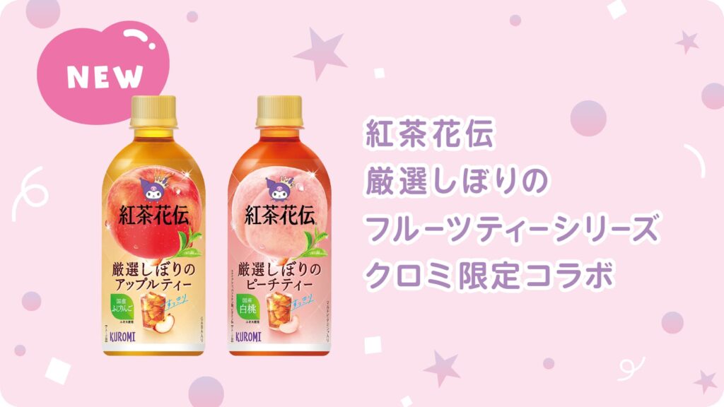 「フルーツティーシリーズ×クロミ」は2種が登場。紅茶花伝のフルーツティーは味も美味しいのでついつい買ってしまいます。
